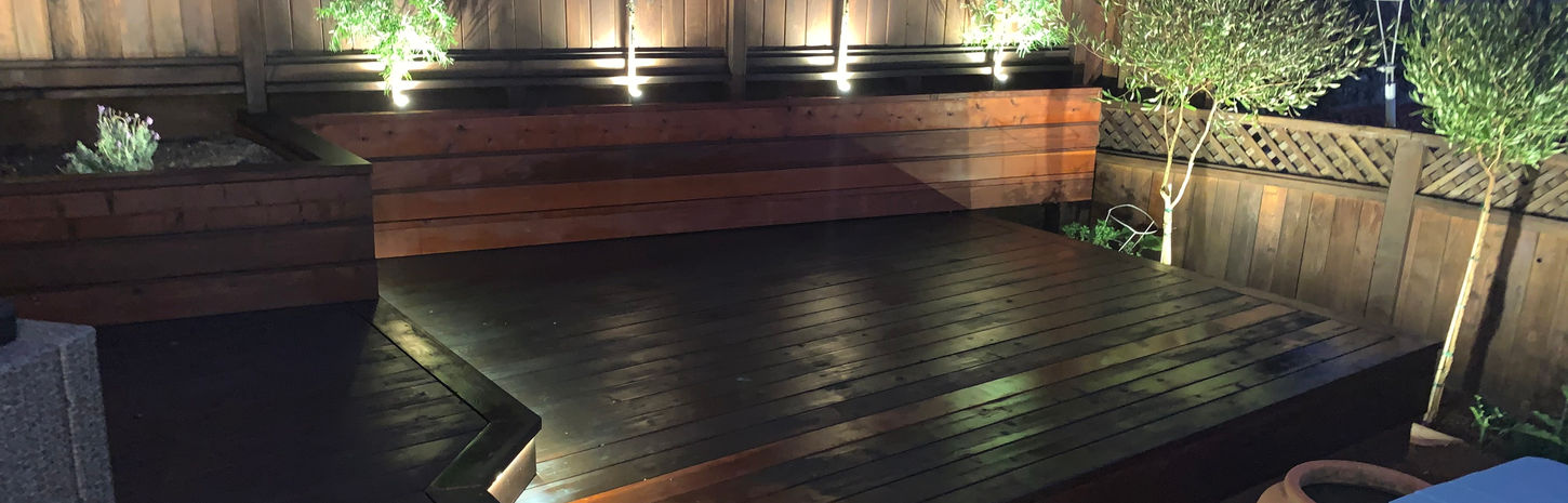 Client requested a backyard deck that turned into 2 decks, planter box's with wash station and walkway BBQ platform with propane tank storage box. Stained finish made this deck really pop! Removed failed concrete patio, terraced grade.